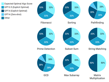 | Problem | GPT-3.5 (Zero-shot) | GPT-4 (Zero-shot) | GPT-3.5 (Explicit Optimal) | GPT-4 (Explicit Optimal) | Expected Optimal Algo |